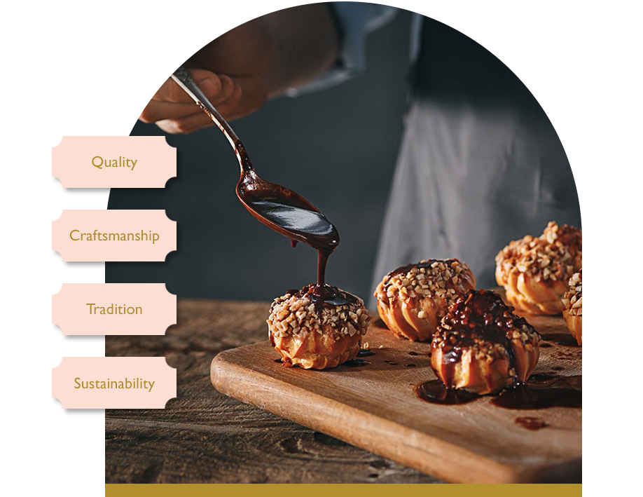 Photos are natural, elegant, well-lit, and colourful. They convey the brand's history, quality, and warmth. Photos of food are close cropped to display fine details and textures. Every image should entice the viewer and leave them wanting more. Action shots are used to show 'the making of', and the care and dedication put into products.